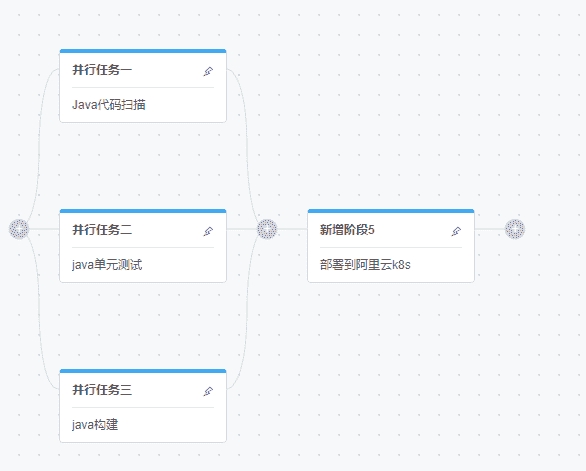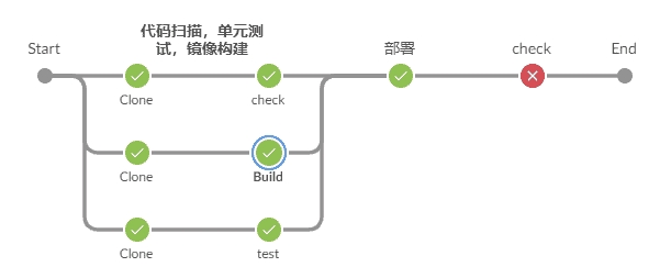 代码扫描,单元测试,构建镜像三个并行运行,等三个完成之后,在进行部署