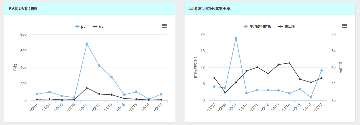 建立网站少不了日志系统,用来查看网站的访问次数、停留时间、抓取量、目录抓取统计、页面抓取统计等,其中,最常用的方法还是使用ELK,但是,本网站的服务器配置实在太低了(1GHZ、2G内存),压根就跑不起ELK,所以只能寻求其他方式,目前最常用的有百度统计和友盟,这里,本人使用的是百度统计,提供了API给开发者使用,能够将自己所需要的图表移植到自己的网站上。日志是网站及其重要的文件,通过对日志进行统计、分析、综合,就能有效地掌握网站运行状况,发现和排除错误原因,了解客户访问分布等,更好的加强系统的维护和管理。下面是我的百度统计的概览页面: