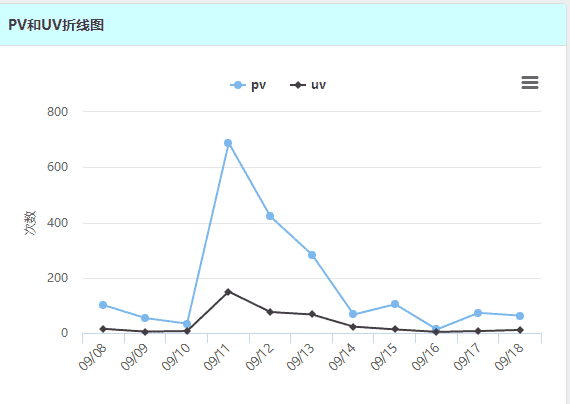 在将数据存进redis中之后,我们需要在博客中使用这些数据来制作图表。在newblog中使用方式也很简单,大概就是使用jedis读取数据,然后使用echarts或者highcharts展示。其中折线图以及线型图我都使用了highcharts,确实比echarts好看的多,但是地域图还是选择了echarts,毕竟中国的产品还是对中国的支持较好。 (1)PV、UV折线图 以图表PV、UV为例,由于存储进redis的是一个数组,所以,可以直接从redis中读取然后放到一个attribute里即可: