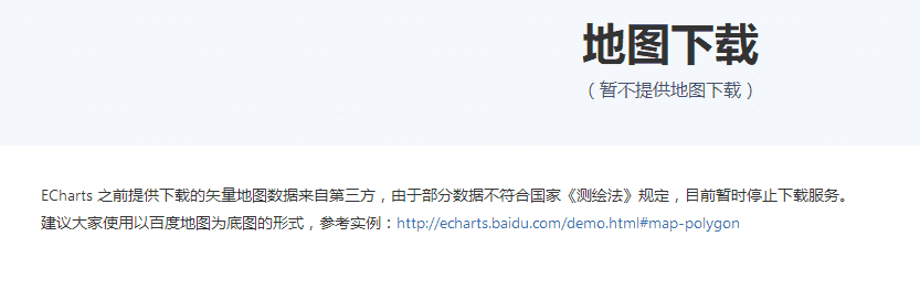 不过地图确确实实是echarts的优势,毕竟还是自家的东西了解自家,不过前段时间去看了看echarts的官网,已经不提供下载了。如果有需要,还是去csdn上搜索吧,或者替换为highmap。